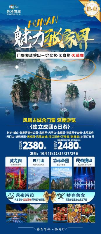 魅力张家界双飞6日宁波独立班 2025-10-15,2025-10-22,2025-10-24,2025-10-27,2025-10-29